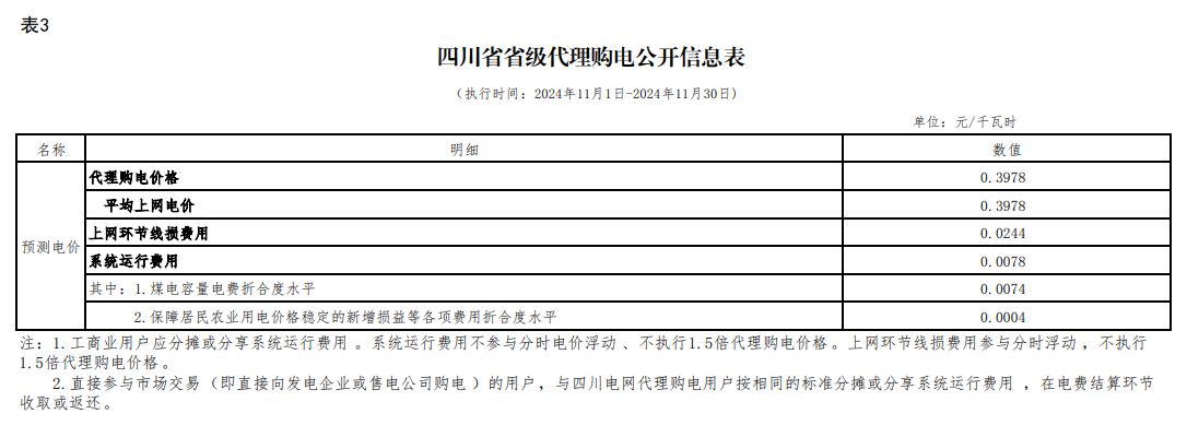 星空网页版登录入口集团有限公司2024年11月工商业代理购电价格公告