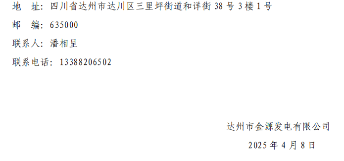 达州市金源发电有限公司关于编制“生产安全事故应急预案”咨询服务询价公告